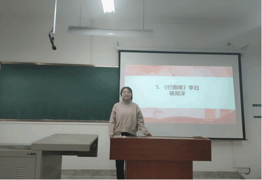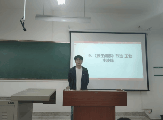 此次活动以“经典诗词诵读”为主题,全班同学积极准备,踊跃参与,为大家奉献了一首首脍炙人口的经典诗词作品。在或温婉柔情或激昂磅礴或低沉婉转的背景音乐中,同学们用饱含深情的语言、慷慨激昂的情绪让观众领略了一个个奇境、一种种精神,深切感受到古代文人墨士的高雅情怀:是曹操《龟虽寿》中有志之士的乐观向上,是《定风波》中苏轼旷达超脱的胸襟,是《将进酒》中李白“天生我材必有用,千金散尽还复来”来的豪情壮志,更是《沁园春·雪》中毛泽东对中国少年的殷切希望。古今诗文,各种文体的交错呈现带给大家耳目一新的体验。